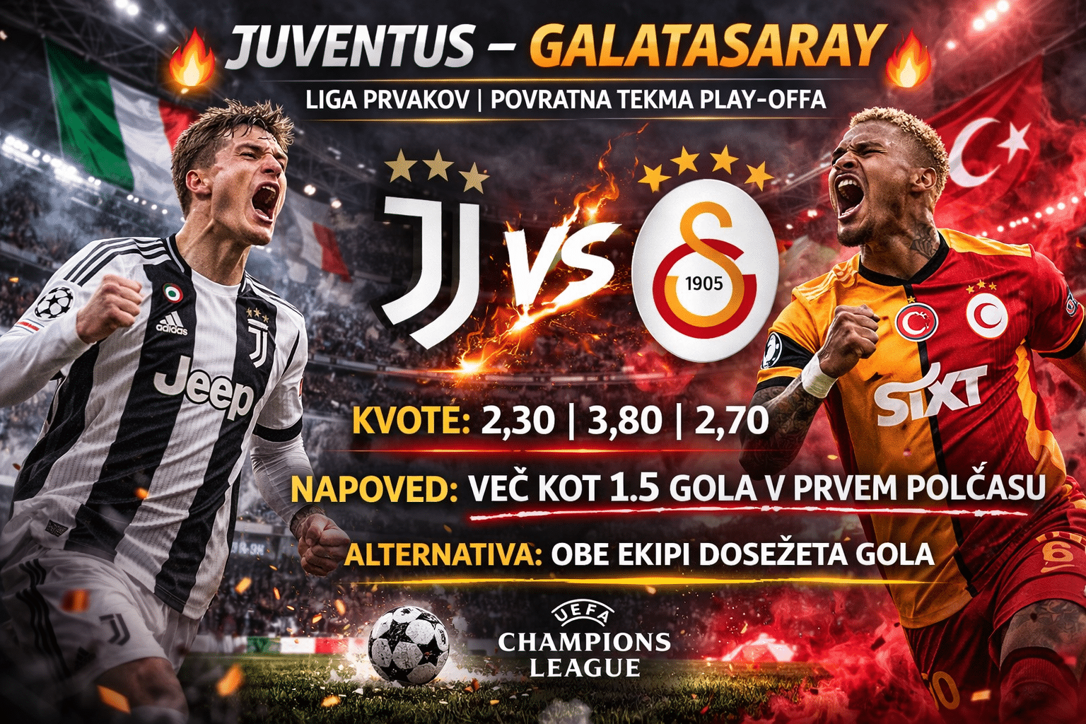 Juventus bo moral napasti od prve minute, kar odpira prostor za dinamičen začetek srečanja. Galatasaray pa ima dovolj kakovosti, da kaznuje vsako napako v obrambi.